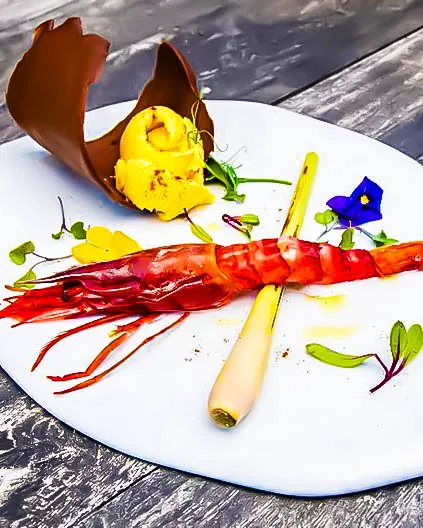 Los sabores hablan por sí solos: carpaccio de gamba roja con papada ibérica, un choque perfecto entre delicadeza y profundidad; tomate glaseado con agridulce de soja y sopa fría de sus jugos, fresco como un amanecer; arroz meloso con pulpo y gambas, que sabe a puerto, a memoria, a isla. Todo acompañado por verduras y hortalizas de huertos cercanos, porque aquí la tierra también cocina. Es Mal Pas Formentera es más que un restaurante: es un latido de la isla, un lugar donde comer es, también, sentir.