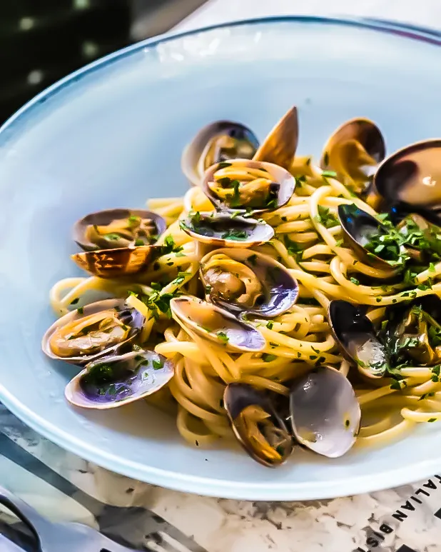 La carta es una declaración de amor a la materia prima. Los antipasti son un festival: embutidos y quesos, carpaccios precisos, ostras Guillardeau que brillan como joyas marinas. Los principales de carne celebran la tradición italiana: solomillo alla Rossini, bistecca alla Fiorentina de rubia gallega madurada, Milanese con hueso. El pescado y marisco despliegan secondi irresistibles: rodaballo salvaje al horno, lubina a la sal, langostinos arrabbiata, atún rojo con aceitunas y crema de tomate cherry asado, incluso una burguer de langosta que es puro capricho. Las pastas frescas caseras —spaghetti Marinelli con almejas, linguine de langostino— completan un menú que respira Italia desde la raíz.